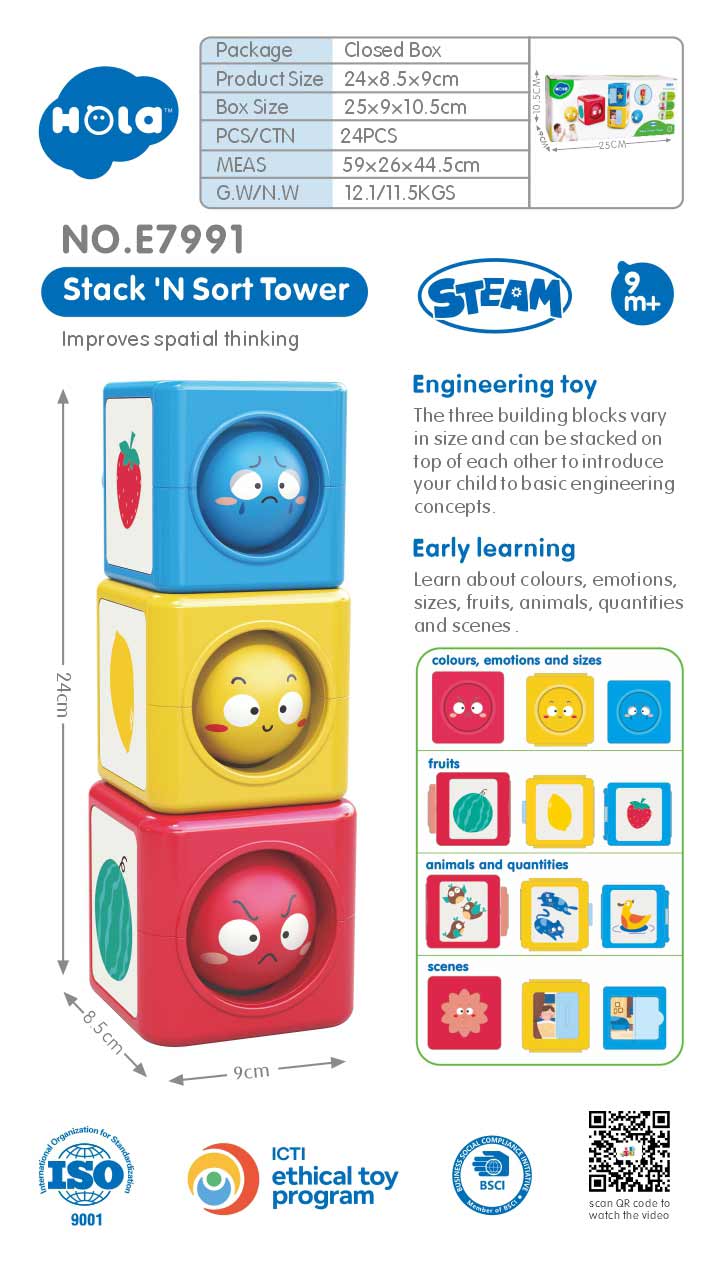 - رده سنی مناسب: اسباب بازی برج هوش E7991 برای کودکان بالای ۹ ماه طراحی شده و میتواند تا سنین بالاتر به عنوان یک بازی فکری مورد استفاده قرار گیرد.